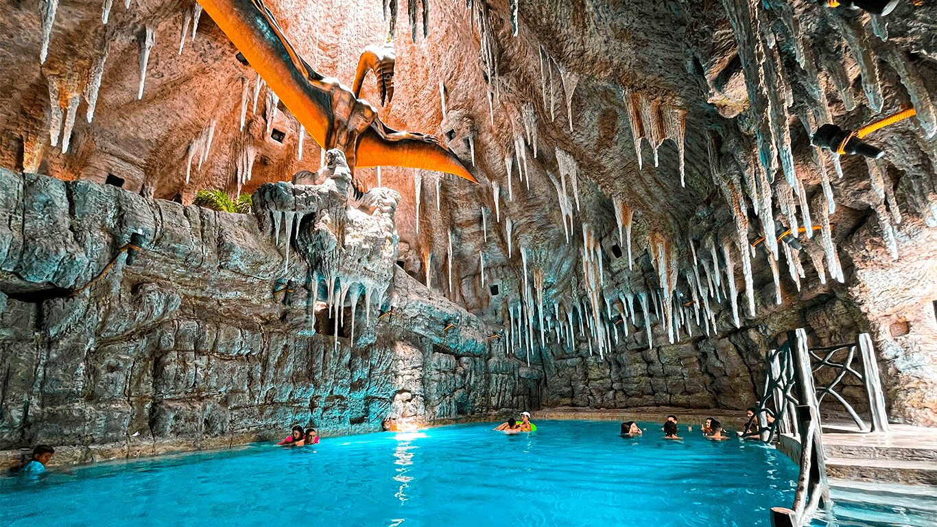 - 07 toboáguas, com funcionamento: 9h30 às 12h30 (toboáguas do vulcão) e 14h30 às 17h (toboáguas coloridos);